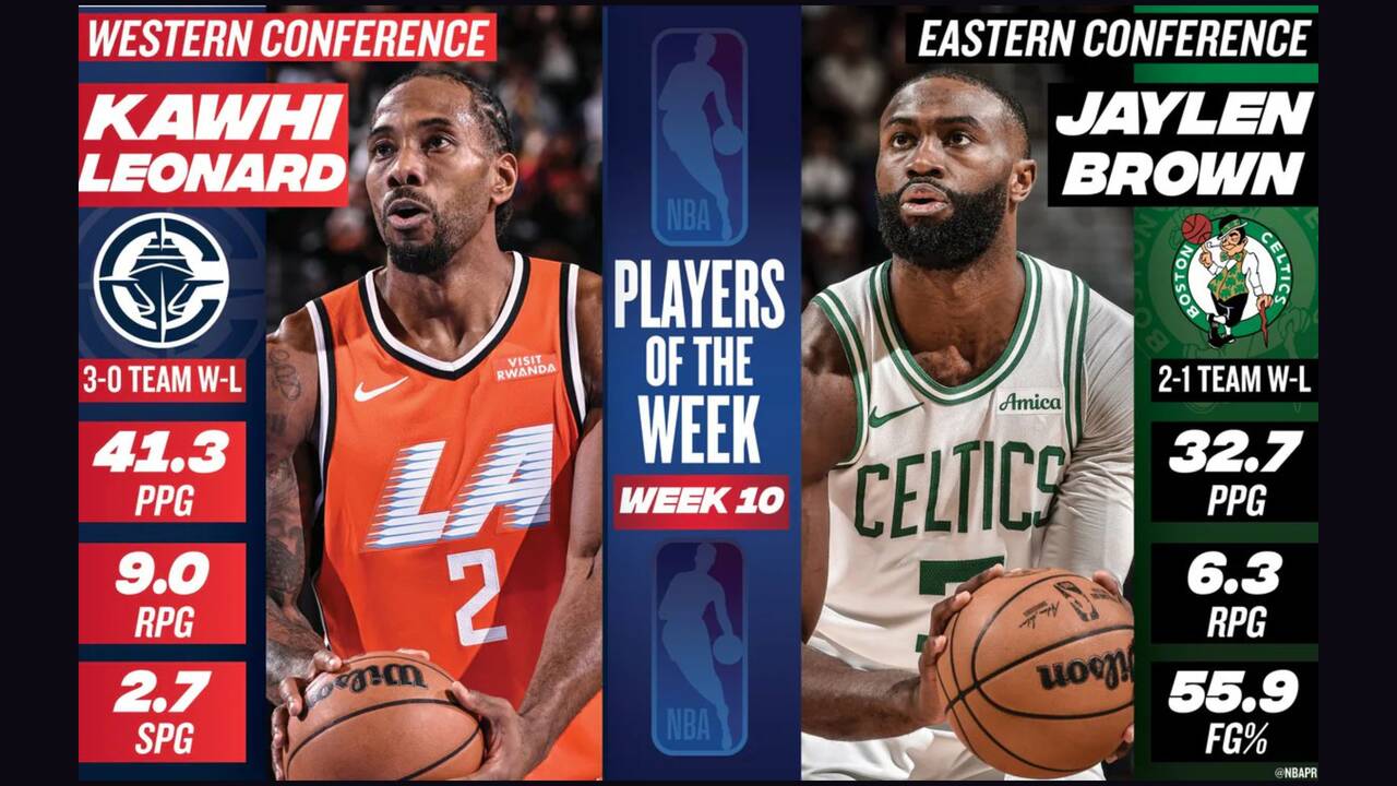 Clippers' Leonard and Celtics' Brown Take NBA Weekly Accolades After Stellar Performance